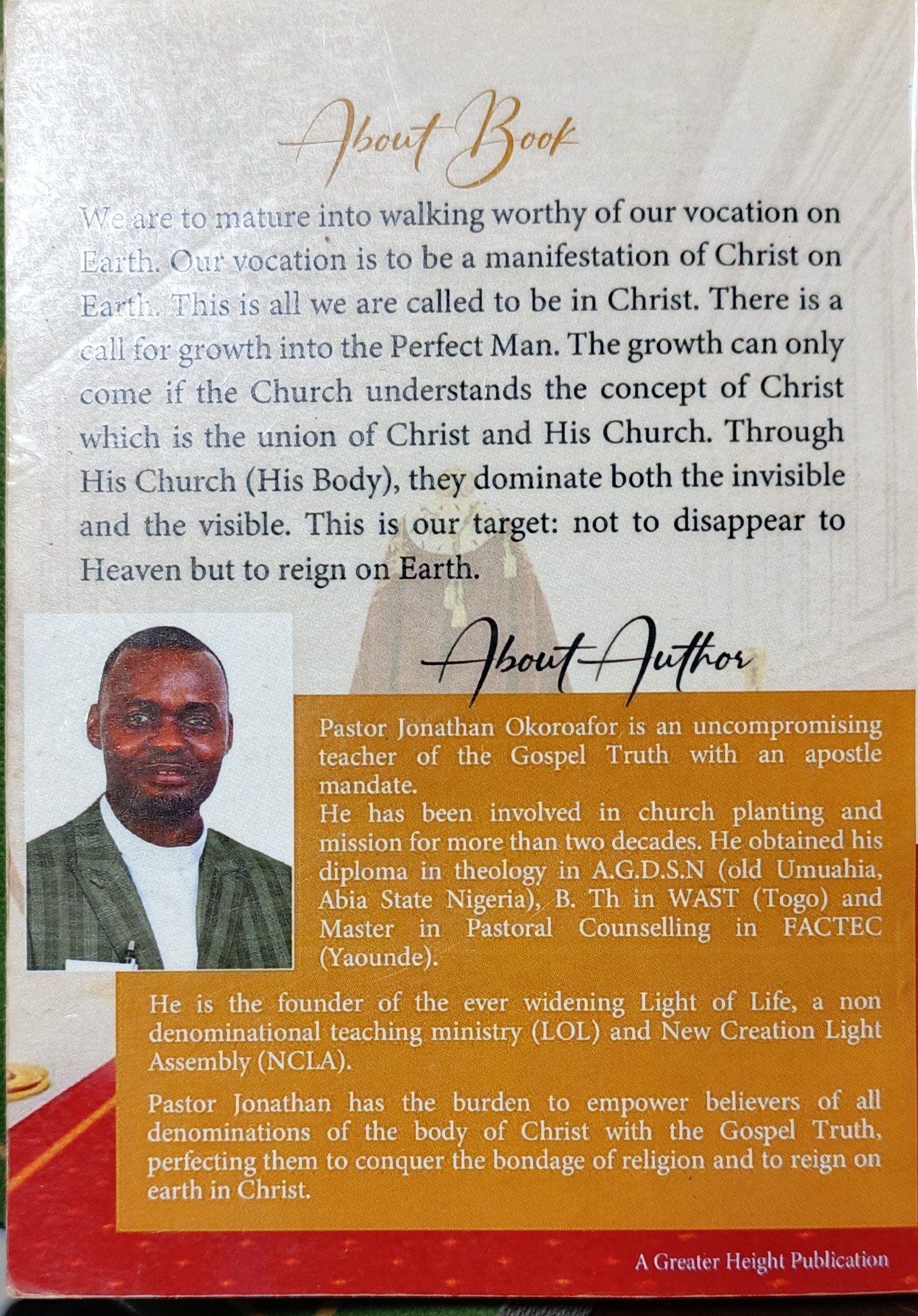 This is all we are called to be in Christ. There is a call for growth in the perfect man. The growth can only come if the church understand concept of Christ which is the union of Christ and his church. Through his church [his body], dominate both the invisible and the visible. This our target: not to disappear to Heaven but to reign on Earth.
